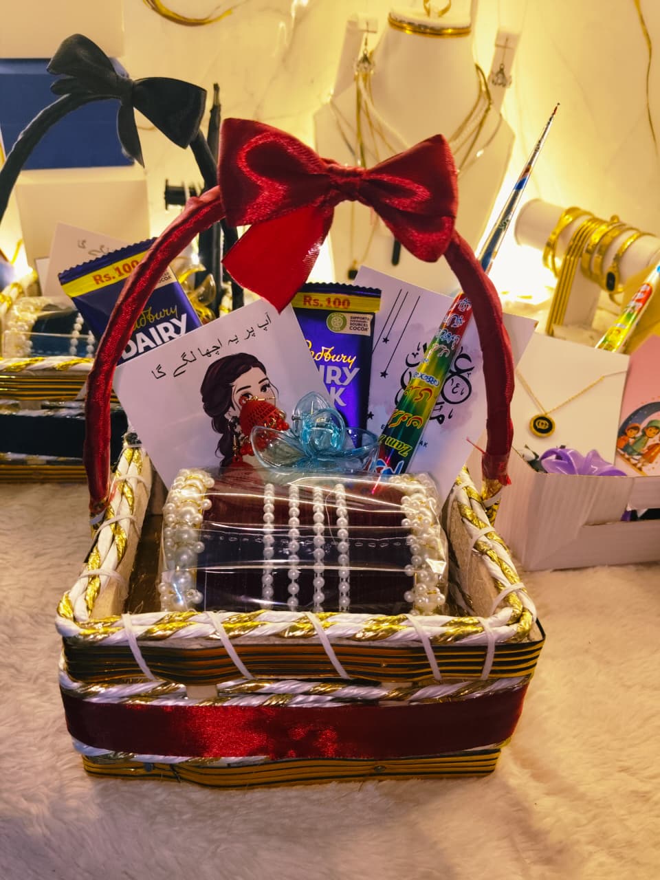 A beautifully curated mini gift box designed to make Eid extra special. Filled with elegant accessories and sweet treats, this stylish basket is the perfect small surprise for someone you love. Thoughtfully arranged and ready to gift, it’s a charming way to share the happiness of Eid. 🎁✨